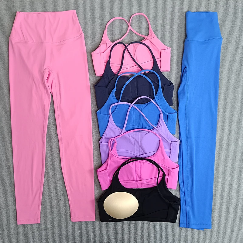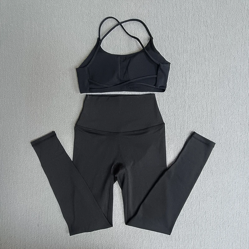 2 Pcs Gym Set Sweat Bra Tops Compression Leggings