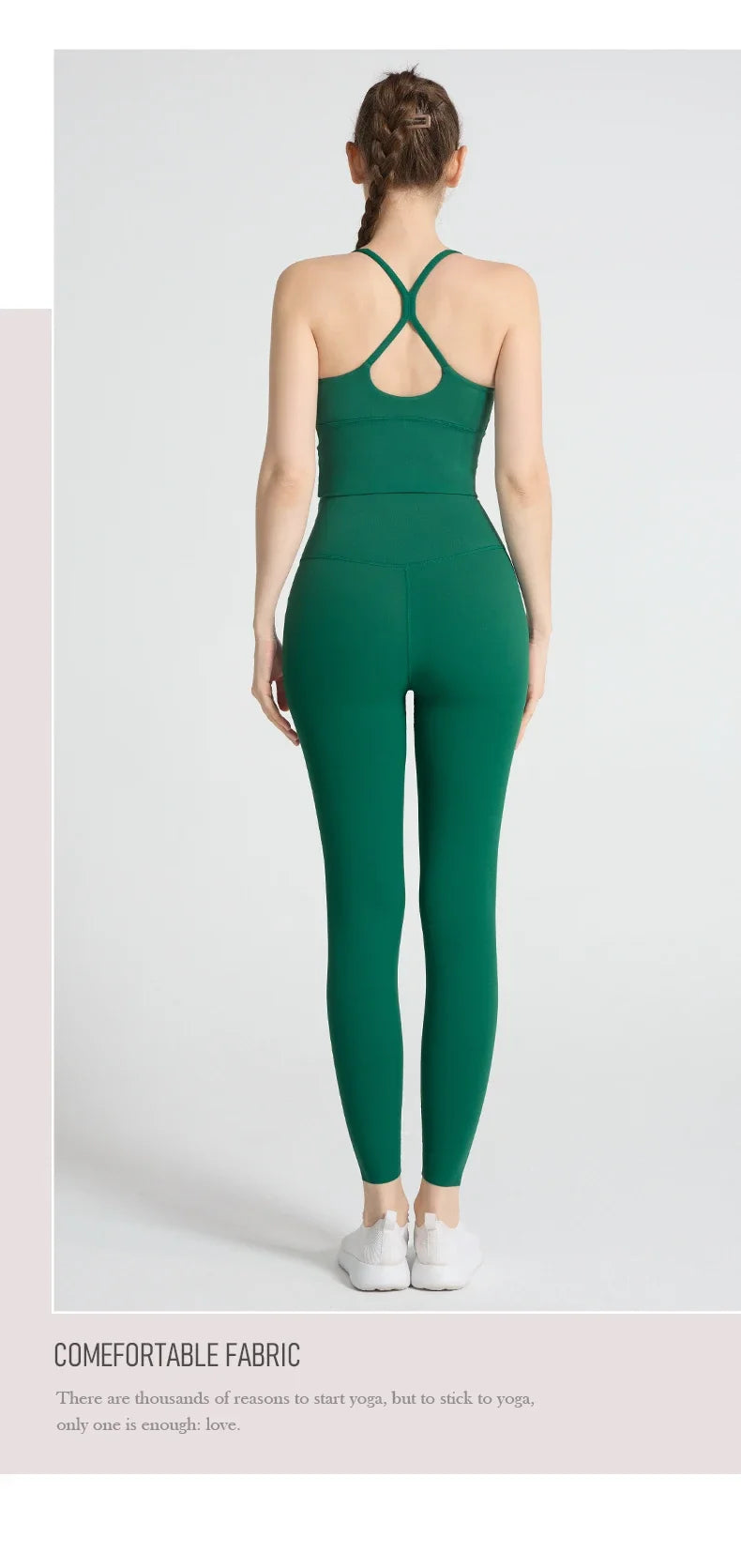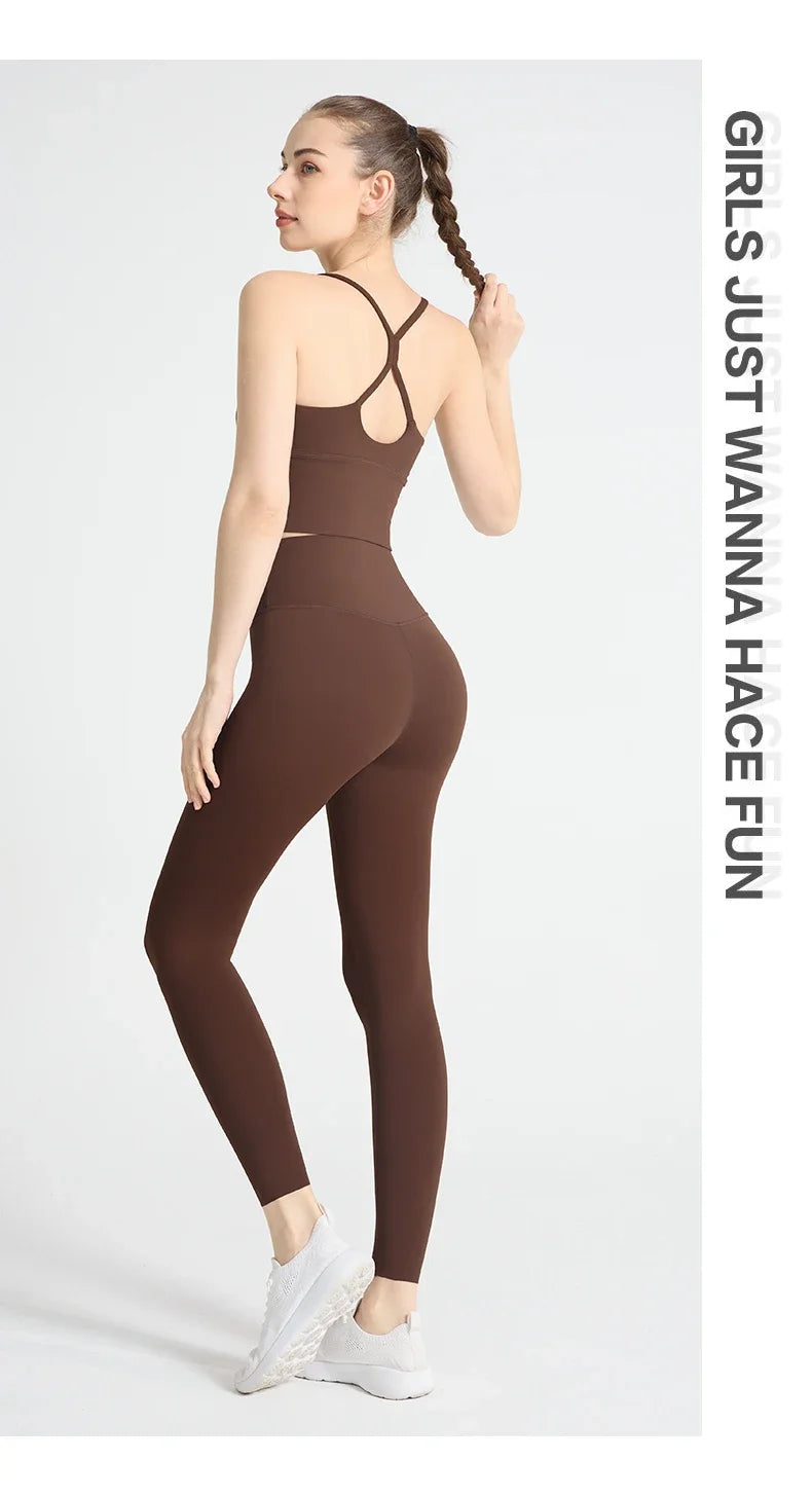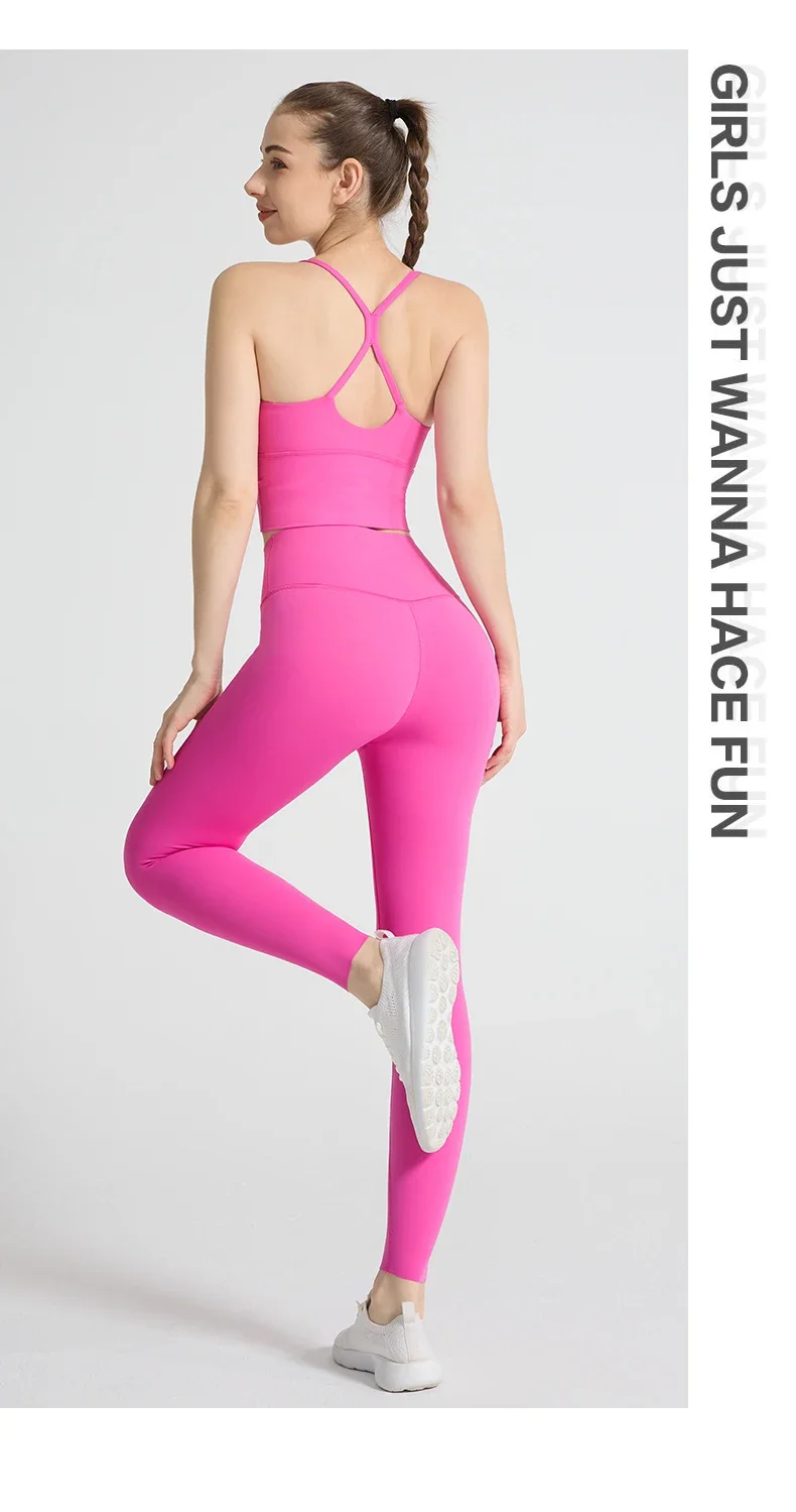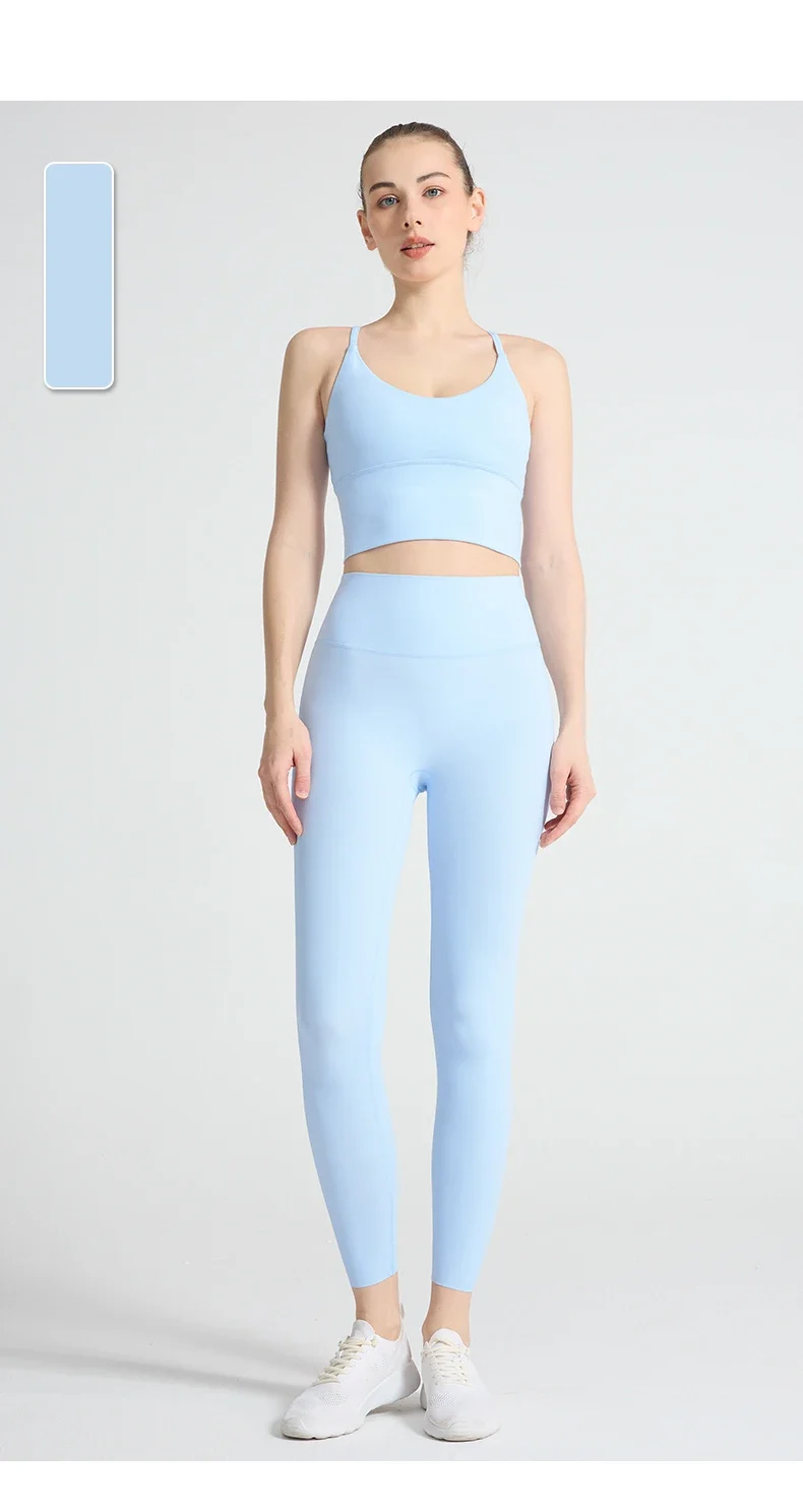 2PCS Yoga Set Crop Top High Waist Legging Fitness Bra Set Breathable