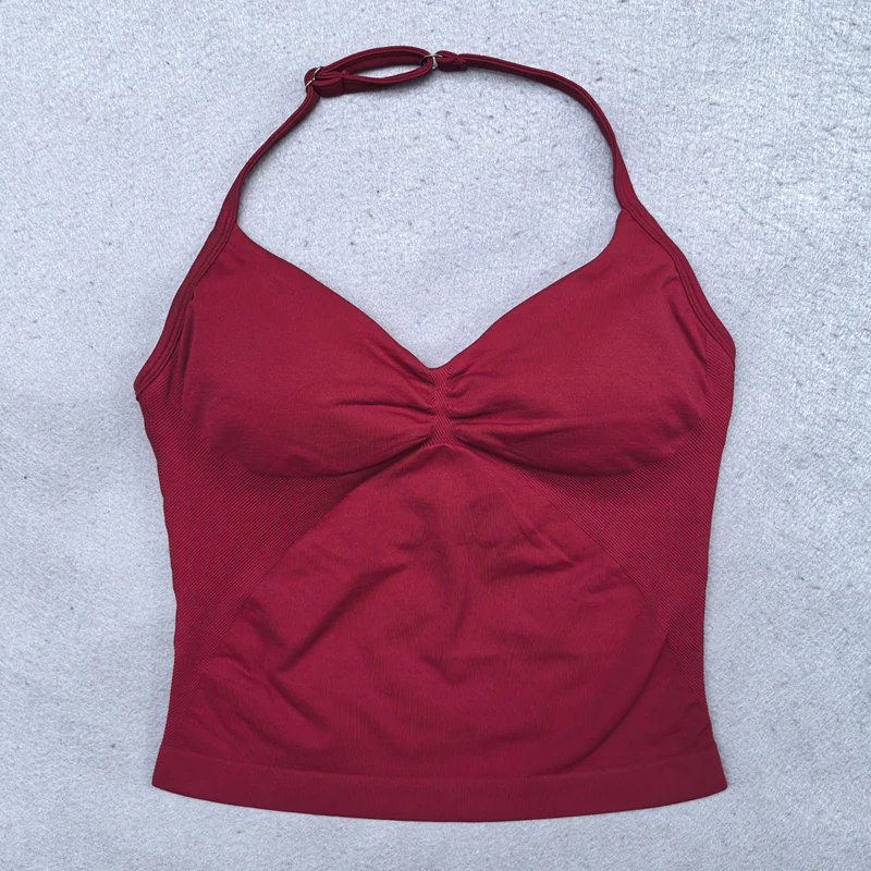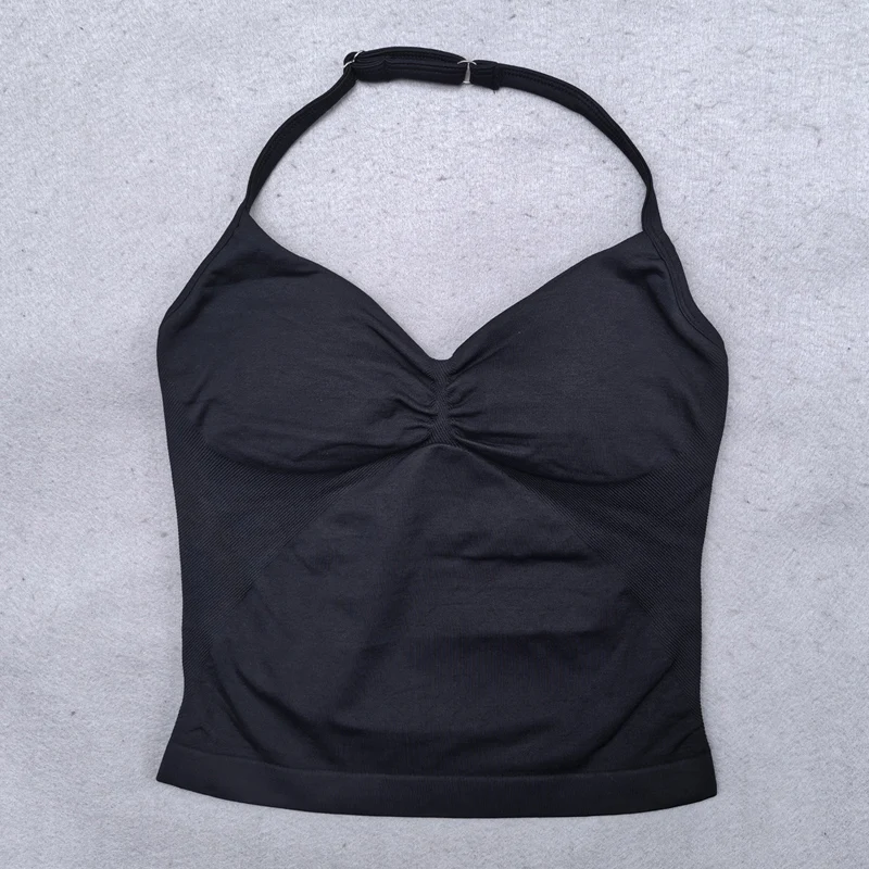 Adjustable Strappy Gym Top Backless Scrunch Bra Removable Cups