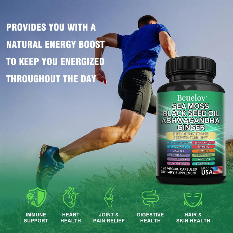 Black Cumin Seed Oil Vitamin C Mineral Supplement, Ashwagandha, 19445 mg, Multi-Level Blend - Sea Moss Pills, Black Seed Oil Pills, Indian Tobacco Root, Fern Capsules, and Burdock Root Capsules with over 10 powerful ingredients. Supports thyroid health, immune system, energy, joints, skin, hair, and nails. Rich in essential vitamins, minerals, and antioxidants, including a multi-mineral and multivitamin blend to provide comprehensive nutritional support to help maintain optimal health and vitality. Provides a comprehensive approach to support overall wellness. Thyroid and Metabolic Support May help support healthy thyroid function and metabolic regulation, helping to improve overall energy levels and vitality.