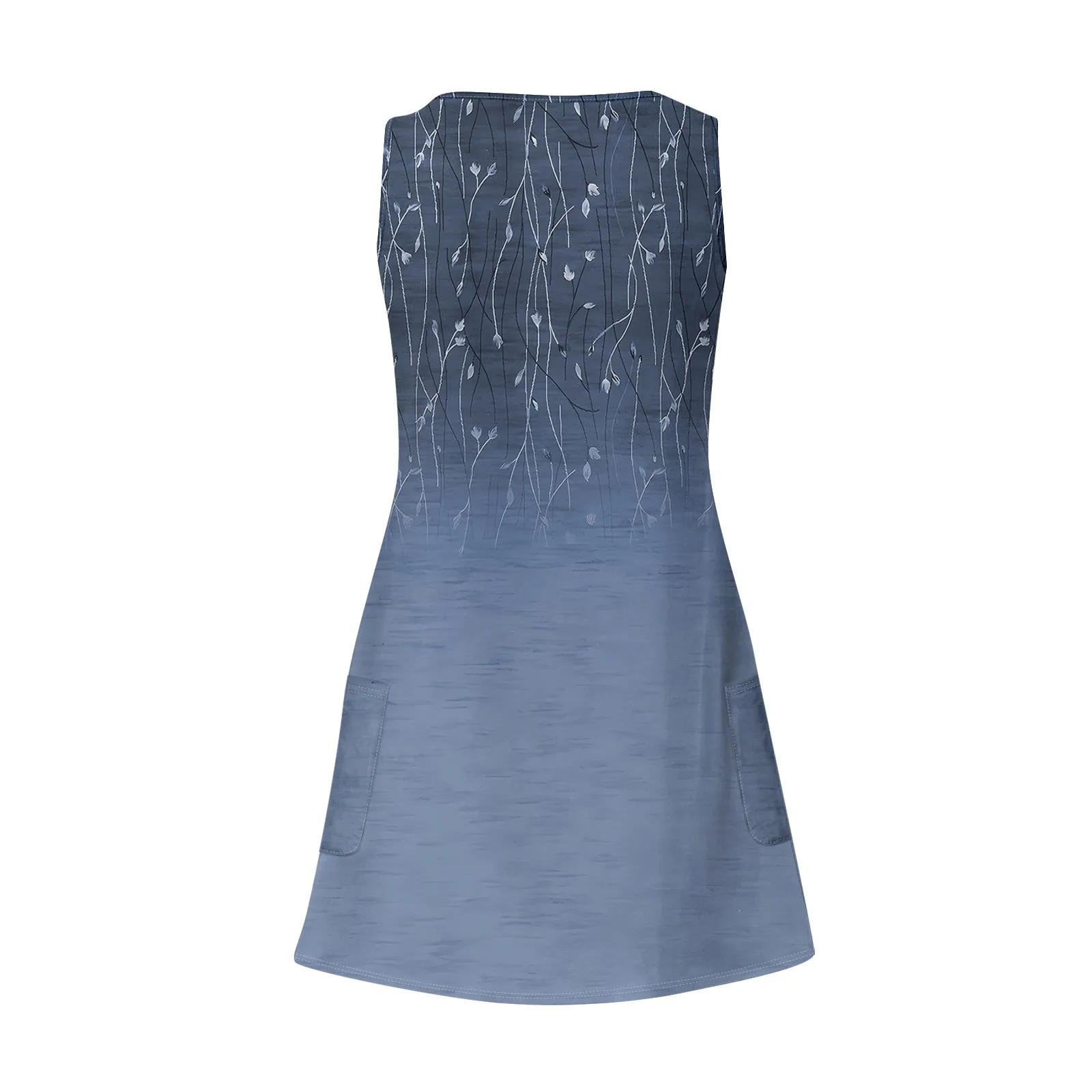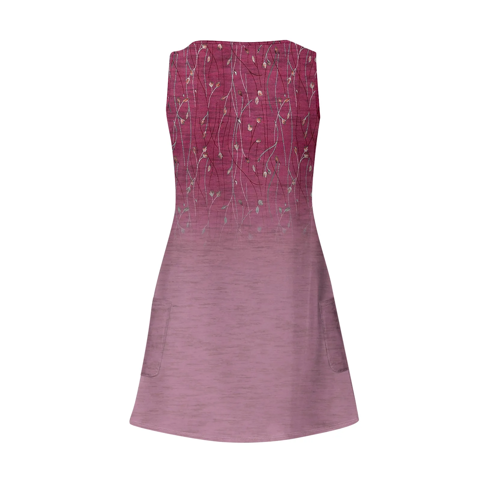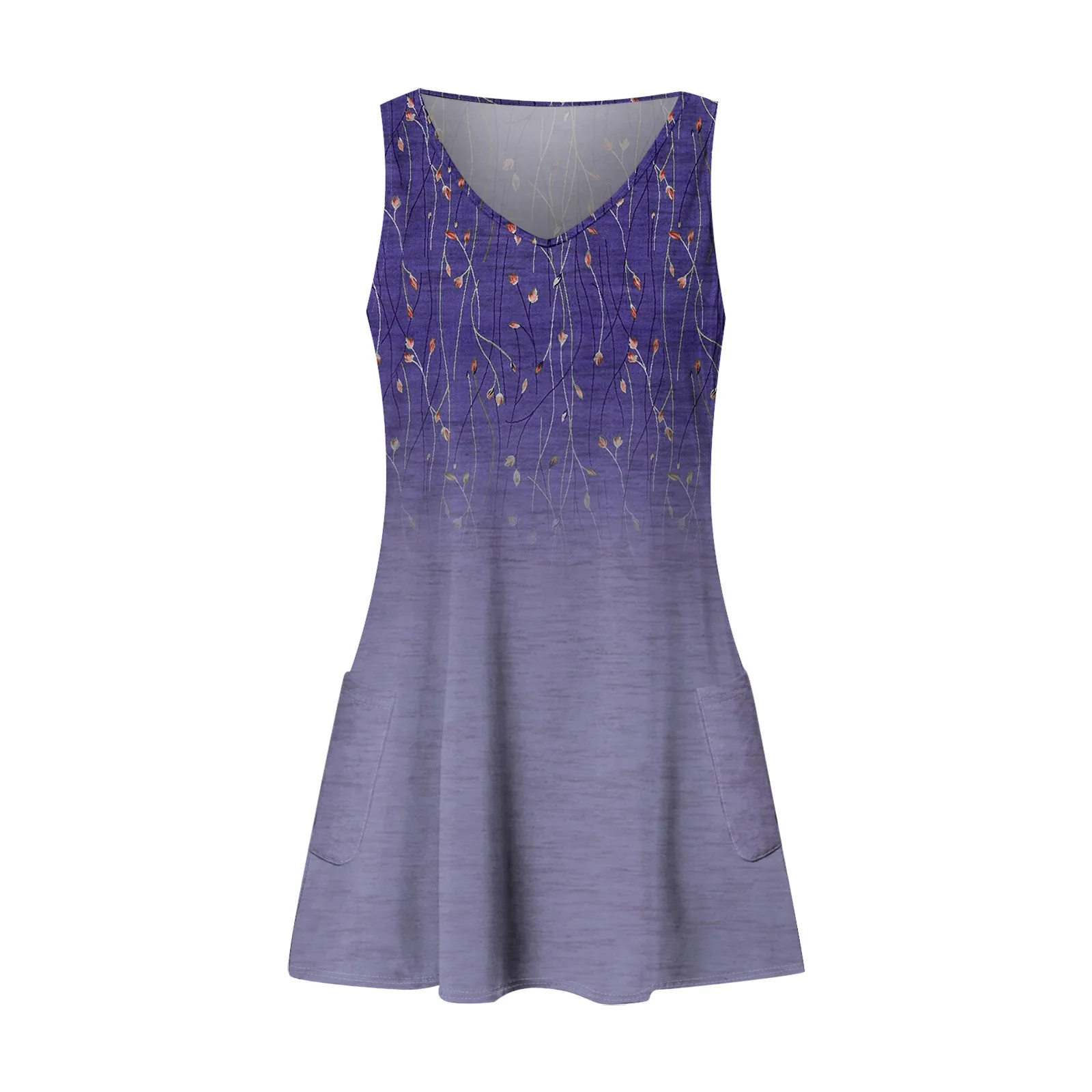 Women's Casual Print Summer Bohemian Beach Dress With Pockets V Neck Tank Dress