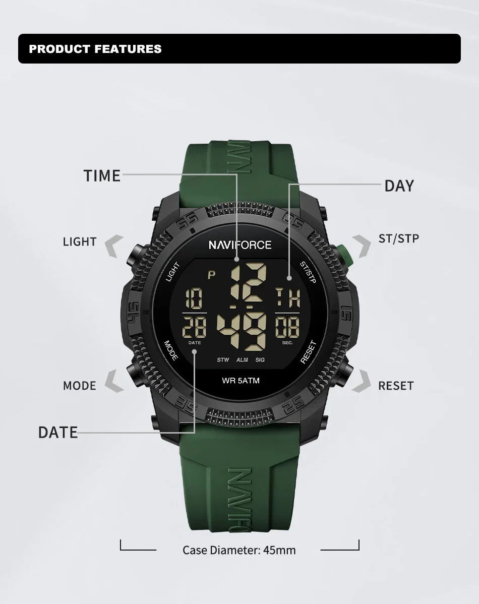 Feature: Shock Resistant,LED display,Complete Calendar,Alarm,Week Display