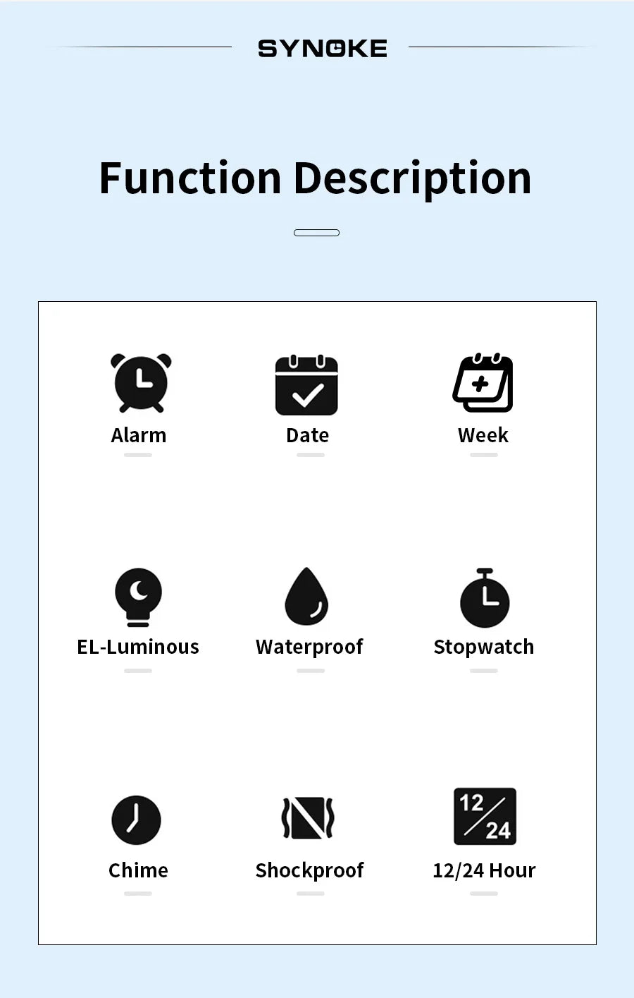 SYNOKE Men Rectangular Sports Electronic Watch Waterproof 50M Night light Large Screen Alarm Clock trend Retro Style