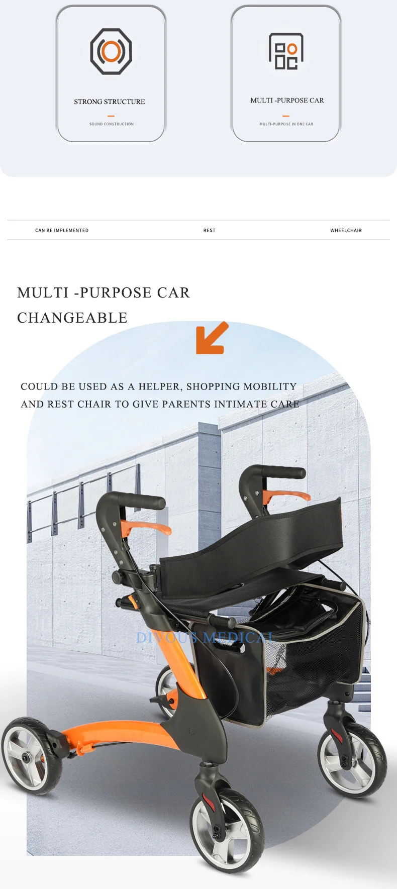 Outdoor 4 Wheels, Elderly Folding Rollator Walker with Hand Brakes, Seat for Disabled