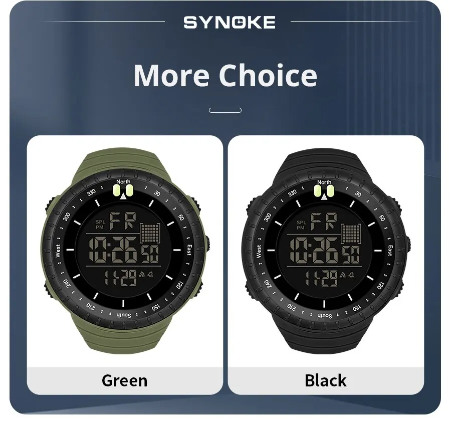 • Multifunctional Sport Watch :The Synoke watch is a versatile digital sport watch, perfect for outdoor activities and water-related adventures. Its large screen display ensures easy readability in any condition.