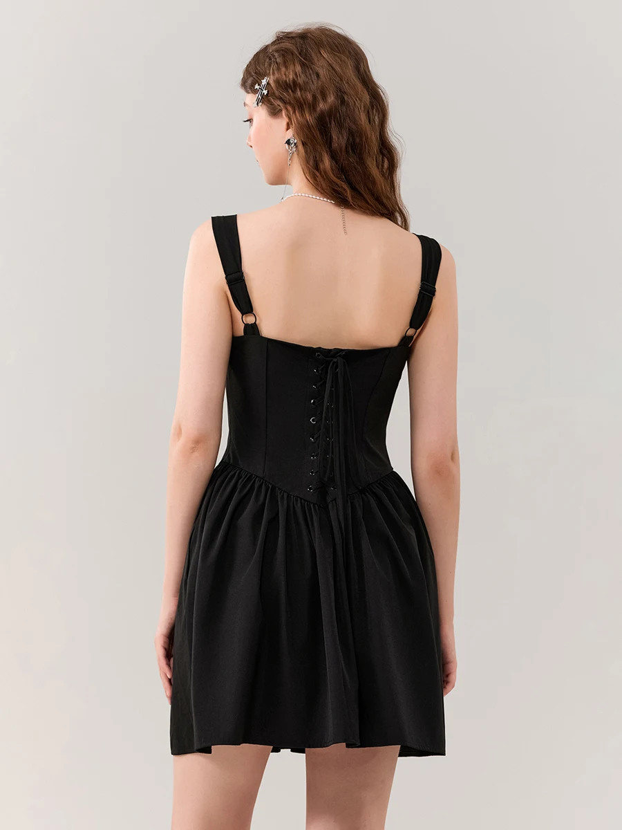 Women Sleeveless A-Line Dress Summer Lace Patchwork Bandage Button Party Dress for Beach Cocktail Club Streetwear