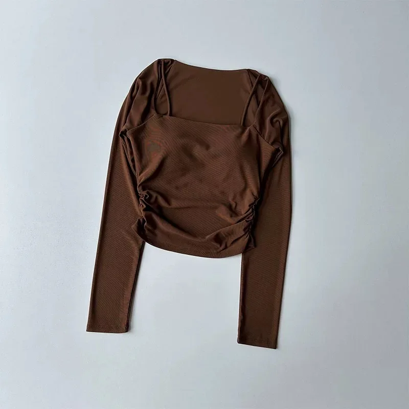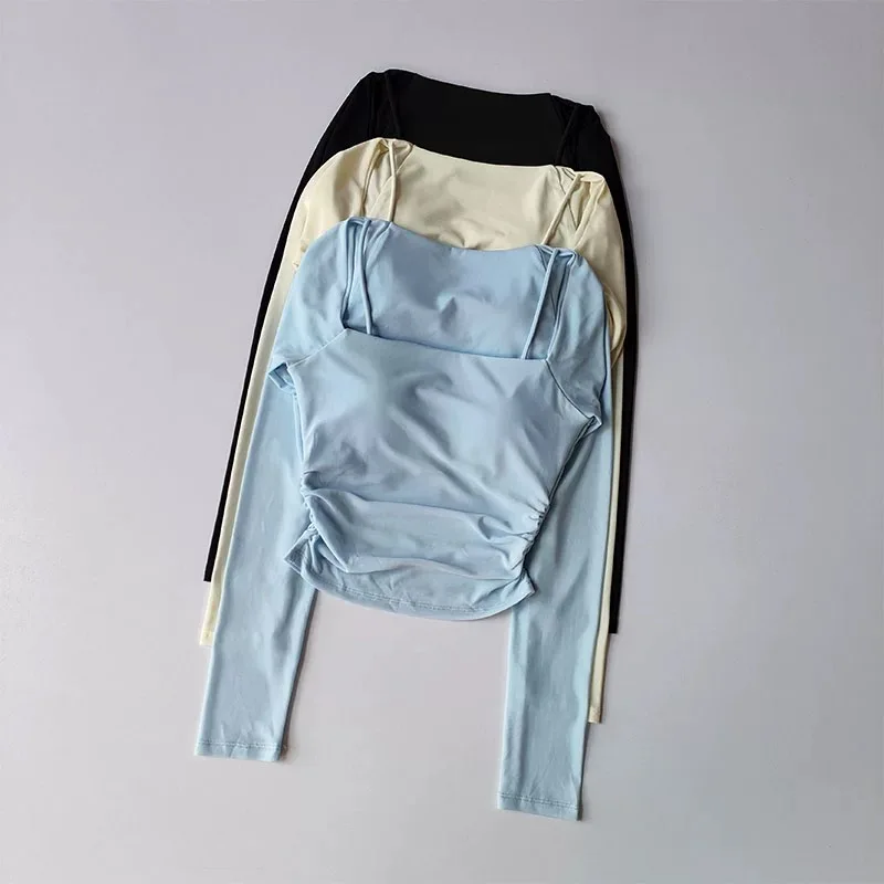 Sports Tops Fixed Chest Pads Mesh Splicing Slimming Long Sleeves