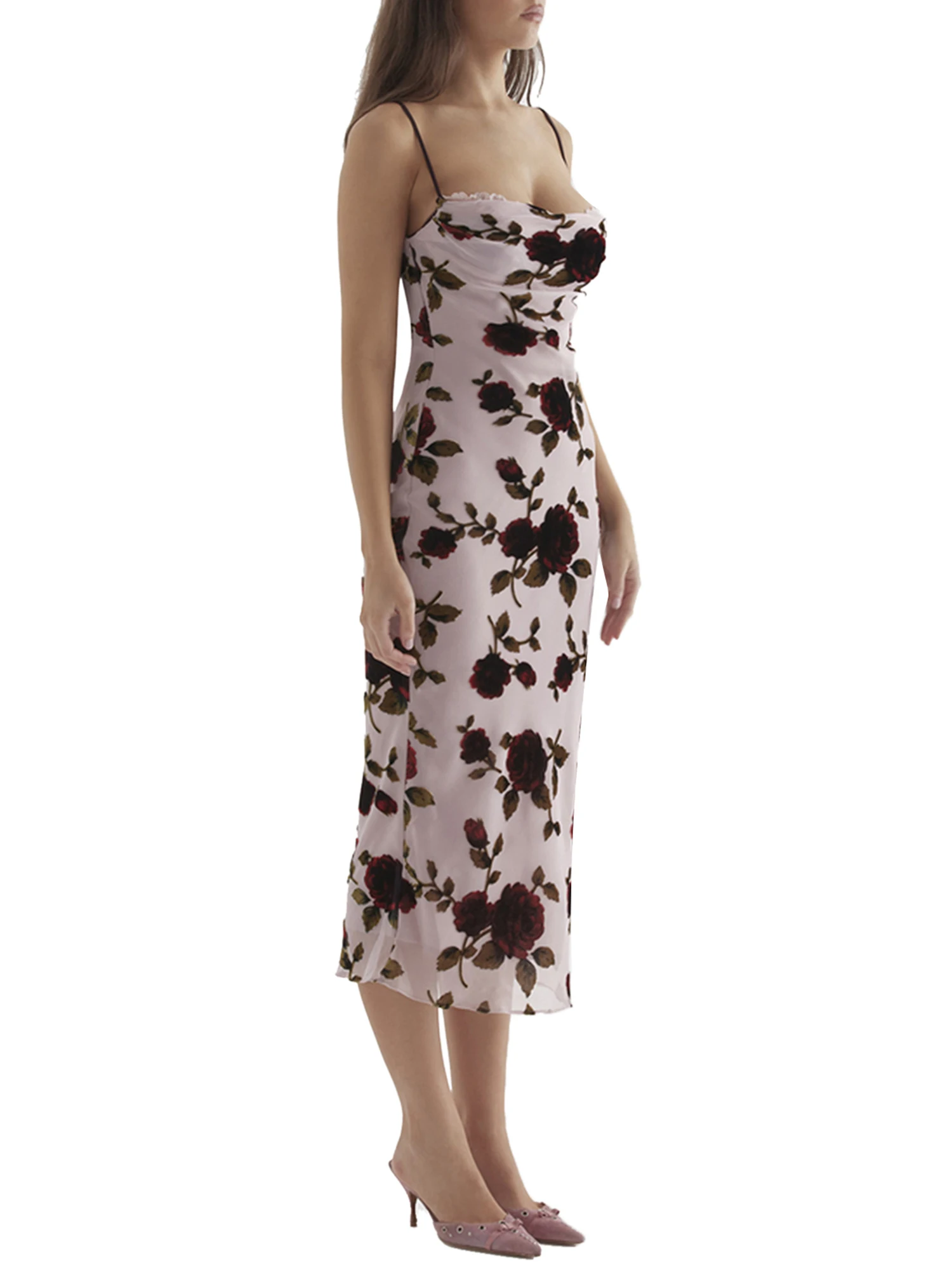Women Spaghetti Strap Sleeveless Dress Summer Casual Floral Print Bodycon Party Dress for Cocktail Beach Nightclub