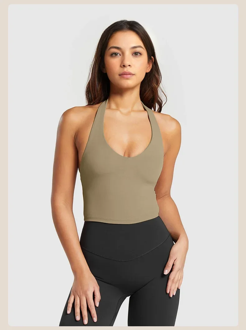 Women's Sports Halter Neck Tank Top; Shockproof Anti-sagging Back