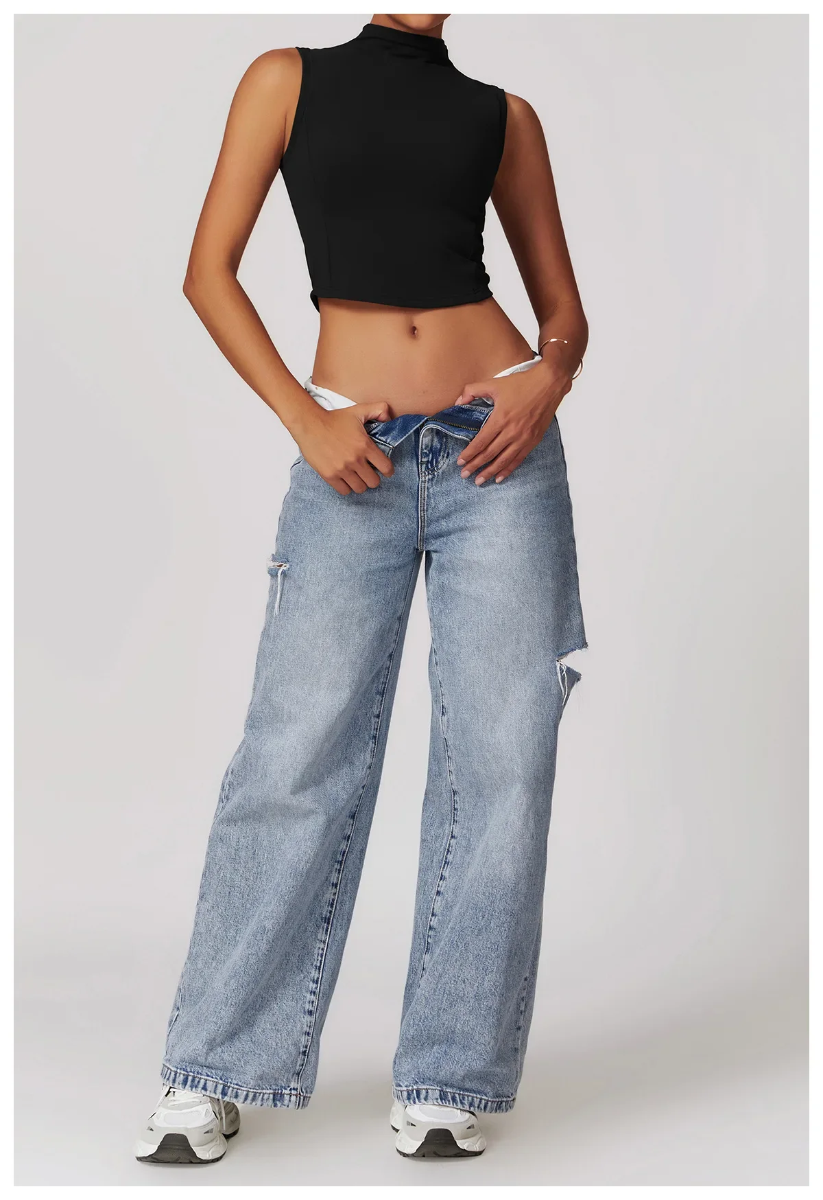 Yoga Vest Crop Top Gym Sleeveless Stand Collar